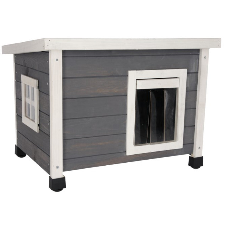 2. Komfort dla Twojego pupila: Zawiasowe drzwi z przezroczystymi listwami chronią Twojego kota przed wiatrem i zimnem, a małe okienko z pleksiglasu zapewnia dużo światła.