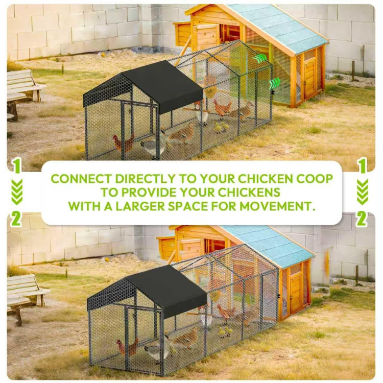 Metalowa rama zapewnia wytrzymałość i stabilność całej konstrukcji. Wybieg nadaje się do użytku na zewnątrz i wytrzyma normalne warunki atmosferyczne podczas długotrwałej eksploatacji.