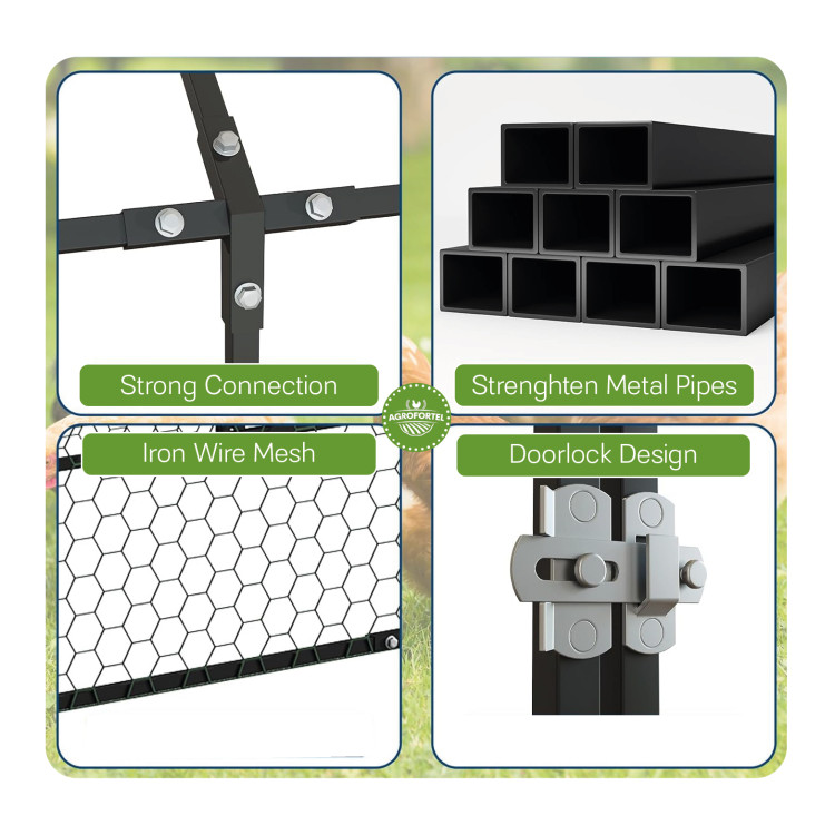 Przestronny, metalowy wybieg zapewnia Twoim zwierzętom bezpieczne miejsce do poruszania się po ogrodzie. Dzięki solidnej konstrukcji, siatce i trzem oddzielnym drzwiom, idealnie nadaje się do codziennego chowu kur, kaczek, królików i gęsi. Możliwość bezpośredniego podłączenia do kurnika.