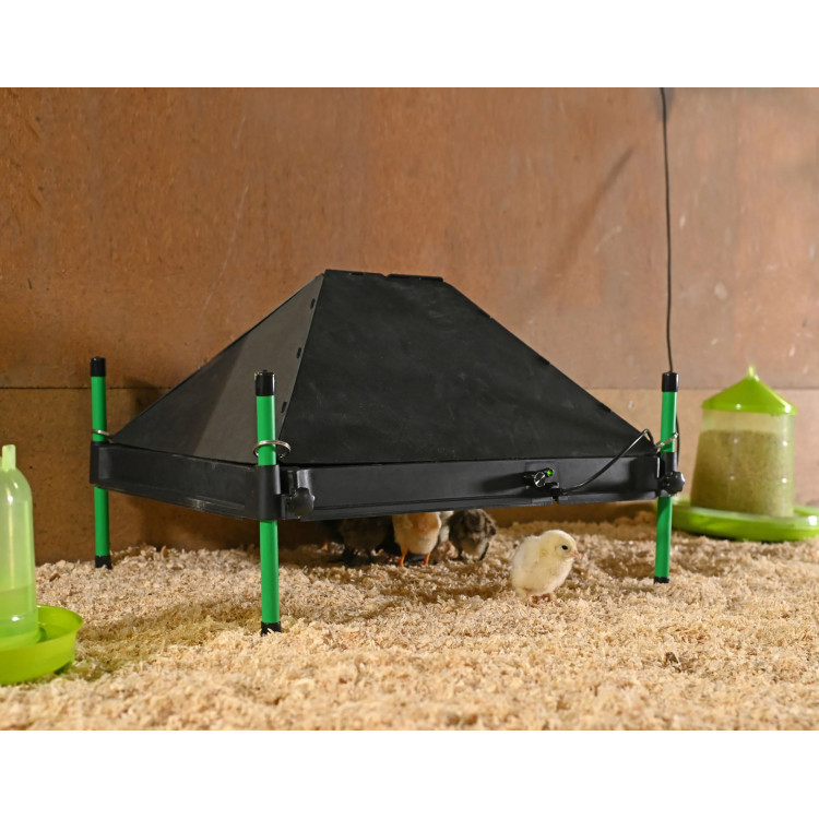 Praktyczna górna osłona do płyty grzewczej CosyHeat Mini przeznaczonej do odchowu kurcząt. Pomaga obniżyć zużycie energii i zapobiega temu, by kurczęta siadały bezpośrednio na płycie.