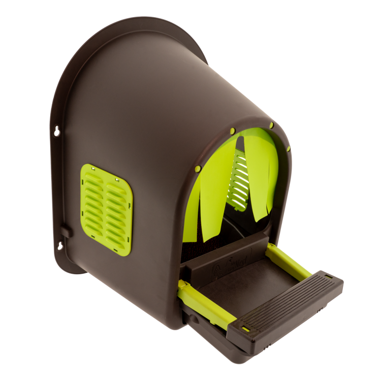 Dzięki gniazdu do zwijania jaj MyCozyNest Roll-Away możesz mieć pewność, że jajka będą świeże i czyste, bez konieczności długich poszukiwań . Dzięki inteligentnemu systemowi obracania jaj grawitacja zadba o każde zniesione jajko , bezpiecznie je obracając i uniemożliwiając kurom na nie nadepnięcie lub poddziobanie.