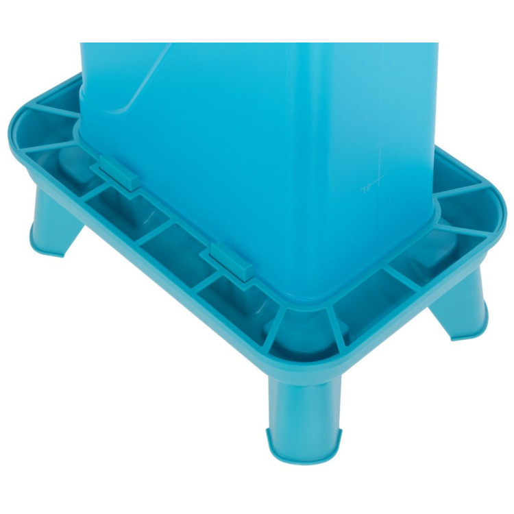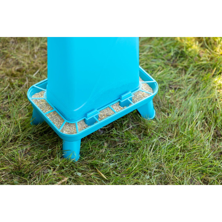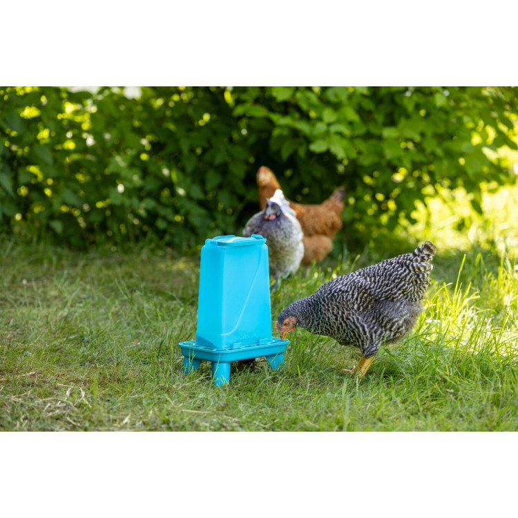 Dołączone nóżki zapewniają stabilniejsze ustawienie karmidła i jednocześnie unoszą paszę wyżej nad ziemię. Zawartość jest dzięki temu lepiej chroniona przed typowymi zabrudzeniami z podłogi kurnika lub wybiegu, co ułatwia utrzymanie czystości podczas karmienia.