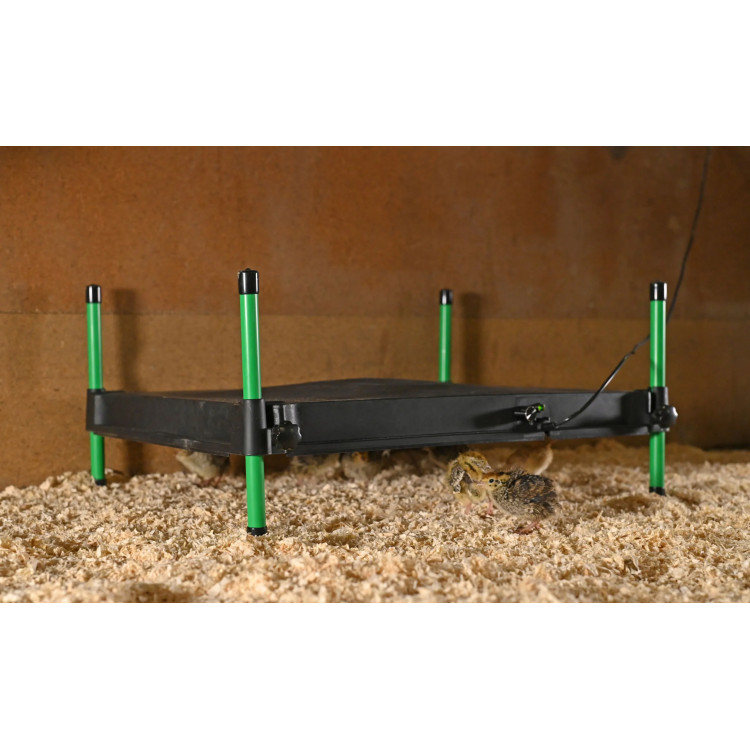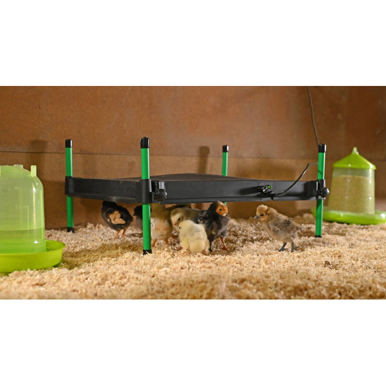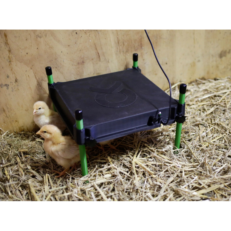 Stabilne źródło ciepła na pierwsze tygodnie życia kurcząt: płyta utrzymuje temperaturę w miejscu gniazda, łatwiej kontrolujesz warunki i ograniczasz ryzyko wychłodzenia.
